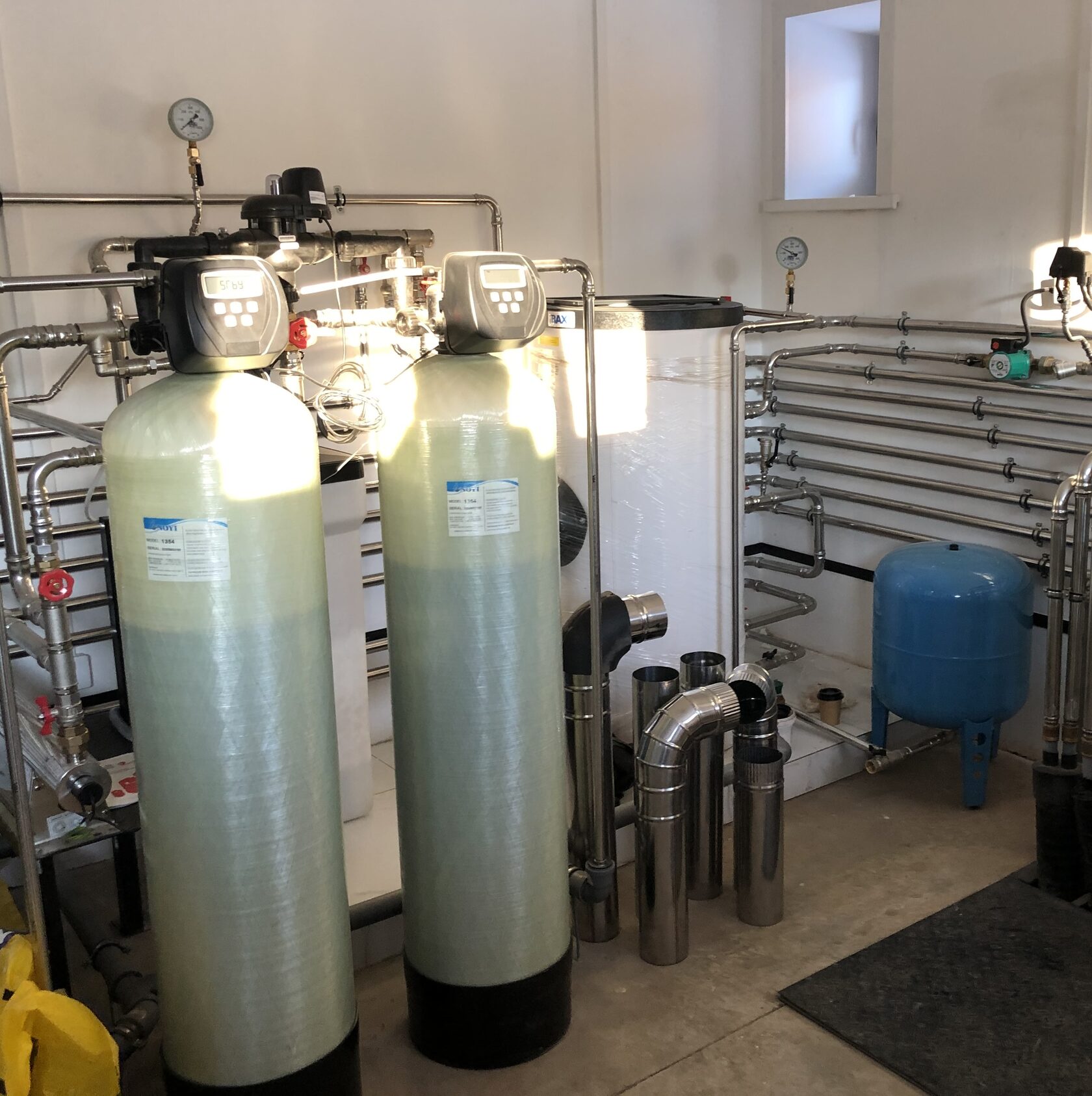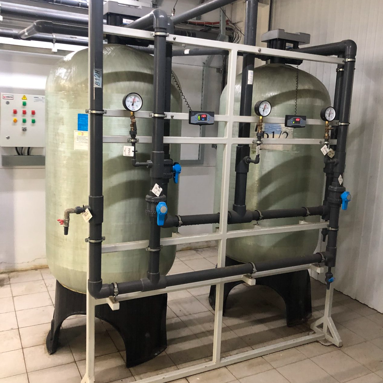 - Общая водоподготовка для технических целей: Используются напорные фильтры для обезжелезивания и умягчения воды, что особенно важно для защиты оборудования от накипи и коррозии.